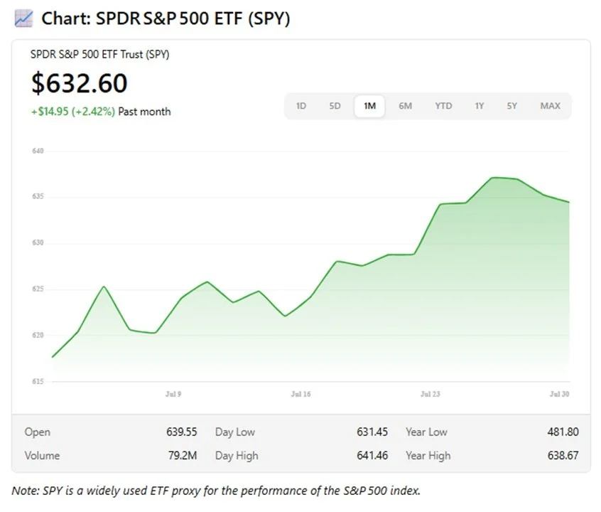 July was a strong month for the S&P 500, which rose approximately +2.84% on a price‑only basis MarketWatch. This gain followed robust results from Q2 earnings, particularly among big tech firms like Meta and Microsoft, fueling investor enthusiasm around artificial intelligence and tech innovation Reuters.